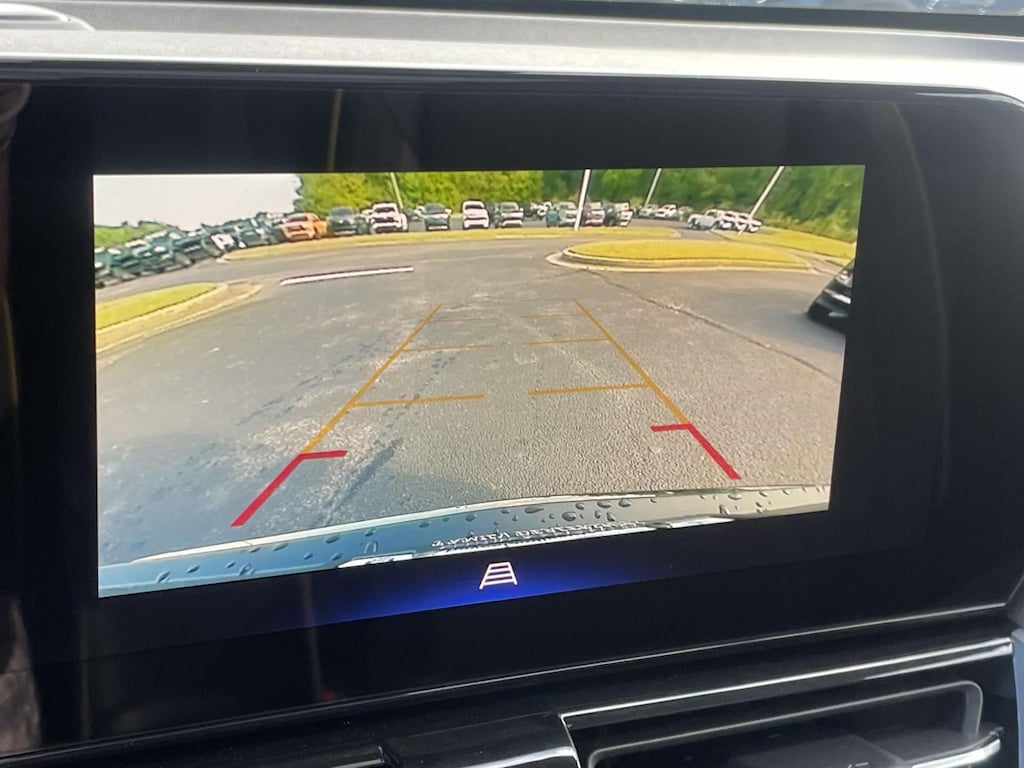 • The vehicle is equipped with a camera that displays an image of the area behind the vehicle on an interior display.